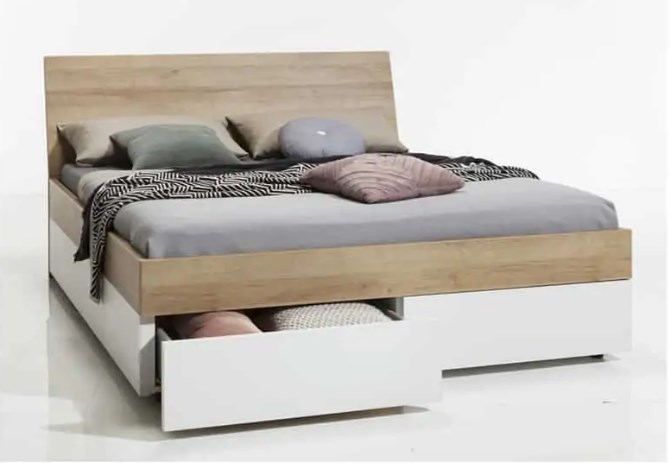 מיטה זוגית זו מעוצבת בעלת ארבע מגירות לאחסון גדולות. זוג מגירות נפתחות מחזית המיטה, ומצד המיטה נפתחת כל מגירה אחרת. המיטה מעוצבת בשילוב הצבעים אלון מבוקע ולבן ונותנת מראה שיקי לחדר. למיטה שידה תואמת מדגם "ניצן". ניתן "ליישר" את גב המיטה בתיאום מול החברה, גם לאחר ההזמנה. מוצר זה עשוי שבבית בציפוי מלמין דחוס יצוק.